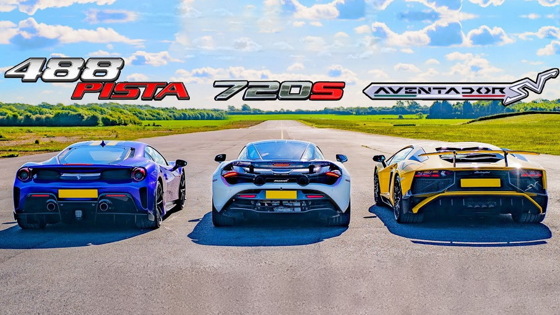 Обозреватели YouTube-канала carwow устроили дуэль между тремя суперкарами разных производителей — «трековой» Ferrari 488 Pista, спецверсией Lamborghini Aventador SV и McLaren 720S. По традиции соревнования состояли из дрэг-гонки на 402 метра, заездах с хода с разными настройками и теста эффективности тормозов. Управление гневом Ferrari 488 Pista — самая лёгкая и современная из троицы. Модель представили в 2018 году, под капотом 3,9-литровый 720-сильный (770 Нм) V8 c двойным наддувом, привод — на заднюю ось, коробка передач — 7-диапазонный «робот» с двумя сцеплениями. Масса — 1390 килограммов, цена в Великобритании — 300 тысяч фунтов стерлингов. McLaren 720S дебютировал на год раньше 488 Pista. Под капотом британского суперкара V8 твин-турбо объёмом 4,0 литра. Мощность и крутящий момент идентичны: 720 сил и 770 Нм. Коробка передач — 7-ступенчатый «робот» с двумя сцеплениями. Масса 1420 килограммов, цена в Великобритании — всего 150 тысяч фунтов стерлингов. Lamborghini Aventador SV представлен в 2015 году, суперкар приводит в движение «атмосферник» V12 6.5 мощностью 750 сил и крутящим моментом 690 Нм. Привод — полный, однако роботизированная коробка передач с семь ступенями имеет лишь одно сцепление. Масса — 1570 килограммов, цена на момент выхода — 315 тысяч фунтов стерлингов. Видео: carwow, YouTube-канал Названы самые популярные суперкары для трек-дней Хотя McLaren в два раза дешевле итальянских суперкаров, 720S не уступил по характеристикам более именитым маркам. Все дуэлянты выиграли по одной дисциплине, а результат заезда с места зависел от времени реакции, «зацепа» на первых метрах дистанции и переключения передач. Суперкары, обязанные своим рождением Формуле-1
