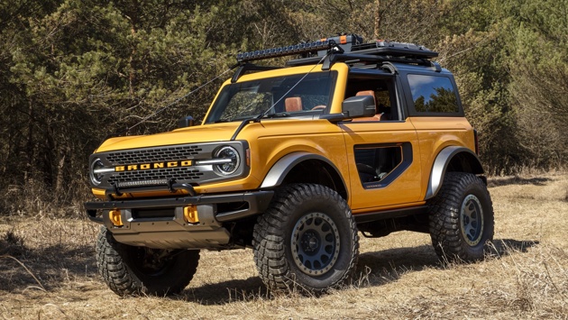 Классический Ford Bronco выпускали с 1965 по 1996 год. За это время внедорожник сменил пять поколений и, в общем-то, неплохо продавался, но не поспевал за меняющимися трендами. Спрос на трёхдверные полноприводники — а Бронко предлагался только с таким типом кузова — в последнее десятилетие прошлого века начал стремительно падать, поэтому руководство Форда быстро нашло преемника — им стал Expedition, построенный на базе пикапа F-150. Что помешало Форду сделать пятидверный Bronco тогда — загадка. Однако внедорожник шестого поколения вышел сразу в двух вариантах: с тремя и пятью дверями, на четыре и пять посадочных мест соответственно. Кроме того, для Бронко доступны семь уровней оснащения плюс несколько опциональных пакетов, самый интересный из которых носит грозное имя [Сасквоч](https://ru.wikipedia.org/wiki/Бигфут) (Sasquatch). О нём мы, конечно, расскажем более подробно, но чуть позже. Дизайн «шестого» Ford Bronco навеян внедорожником первого поколения. Сделать образ с ходу узнаваемым позволили и общие пропорции, и характерные акцентные линии, и, разумеется, оформление передка с кругляшами фар, которые теперь, к слову, даже «в базе» светодиодные. Секции крыши, двери и некоторые кузовные панели — быстросъёмные, причём их можно убрать в багажник и возить с собой на случай непогоды. Новый Bronco унифицирован с пикапом Ranger, а значит сохранил рамную конструкцию. Подвеска спереди — независимая Dana AdvanTEK, с двойными алюминиевыми А-образными рычагами и стойками типа coil-over; сзади— неразрезной мост Dana 44 AdvanTEK с креплением на пяти рычагах и спиральными пружинами. За доплату можно поставить длинноходные амортизаторы Bilstein со смягчающими удары концевыми клапанами и электронную блокировку дифференциала Spicer Performa-TraK. Плюс для внедорожника доступен стабилизатор поперечной устойчивости с гидравлическим замком: он размыкается на бездорожье для лучшей артикуляции колёс и смыкается обратно на высокой скорости. Дорожный просвет Бронко варьируется от 211 до 295 миллиметров. Углы въезда и съезда составляю максимум 29 и 37,2 градуса, а ходы подвески — 200/215 миллиметров для базовой версии и 240/261 для исполнения Badlands. Глубина брода — 851 миллиметр, что меньше, чем у того же Дефендера — 900 миллиметров, но больше, чем у Wrangler — 762 миллиметра. Не пасовать на бездорожье новому Бронко также помогает продвинутая система переключения ездовых режимов с профилями G.O.A.T — прозвище «козёл», а на самом деле акроним от Goes Over Any Type of Terrain (проедет по любой местности), прицепилось ещё к внедорожнику первого поколения. Всего режимов семь: четыре базовых — Normal, Eco, Sport, Slippery/Sand — и три для мест, куда не каждый решится поехать, — Baja, Mud/Ruts и Rock Crawl. Ещё есть опциональный набор Trail Toolbox. Он включает в себя низкоскоростной круиз-контроль Trail Control, помощника Trail Turn Assist, уменьшающего радиус поворота за счёт векторизации тяги, и внедорожный режим движения в одну педаль Trail One-Pedal Drive, позволяющий более точно дозировать тягу на сложных участках. Все жизненно важные «органы» машины прикрыты стальными пластинами — это касается двигателя, трансмиссии, раздаточной коробки и элементов подвески. Подножки выдерживают вес машины, даже если завалить её на одну сторону. На выбор для внедорожника предложено два двигателя: базовая бензиновая «турбочетвёрка» 2.3 EcoBoost (274 силы и 420 Нм) и опциональный наддувный V6 2.7 EcoBoost (314 сил и 542 Нм). Младший агрегат сочетае