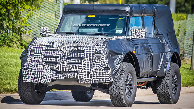 Прототип внедорожника отличается колесами увеличенного внешнего диаметра, более энергоемкими амортизаторами и, вероятно, более мощным двигателем. Компания Ford готовит более экстремальное исполнение сенсационного Bronco и уже засветила тизер прототипа в Twitter. Теперь новую информацию предоставили фотошпионы, заснявшие закамуфлированный тестовый образец. Предполагается, что автомобиль может получить название Bronco Raptor или Bronco Warthog – такое имя недавно было запатентовано и, как полагают СМИ, оно выбрано именно для самого крутого Bronco. Из фотографий следует, что топовая версия получит шины BF Goodrich All-Terrain T/A KO2 LT315/70R17 внешним диаметром 35 дюймов, которые поставляются для версии Sasquatch Pack. Также видны амортизаторы Fox – такими оснащается спортивный пикап Ford F-150 Raptor. Не исключено, что Raptor/Warthog получит 3,5-литровый наддувный двигатель V6, развивающий как минимум 350 л.с. Для сравнения, самый мощный агрегат, предлагаемый для Bronco, – это 314-сильная "турбошестерка" объемом 2,7 л. Премьера топовой модификации ожидается до конца 2020 года.