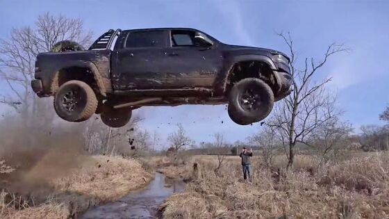 Парень, известный под ником Street Speed 717 на YouTube, решил перепрыгнуть на новеньком пикапе через небольшой канал с водой. Идея родилась не просто так, а после того, как этот прыжок успешно совершил Ford F-150 Raptor. По идее Ram TRX с его активной подвеской Bilstein и 35-дюймовыми внедорожными колесами Goodyear должен был повторить трюк. Но что-то явно пошло не так.