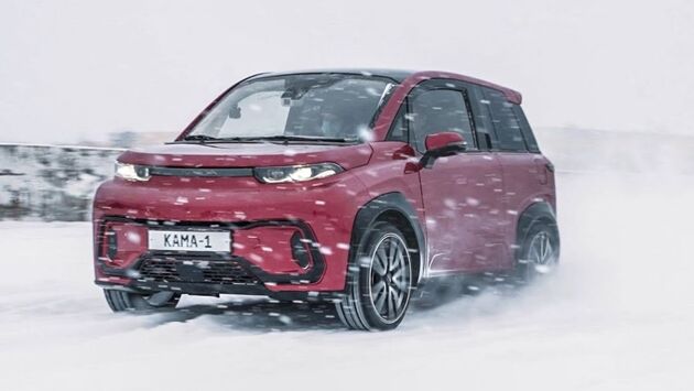 Новый российский электромобиль Кама-1 испытали на заснеженной дороге