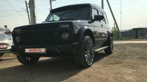 Выручить за необычную "Ниву" предлагается за 1 050 000 рублей. При этом пробег автомобиля составляет 100 000 километров. Выполнен автомобиль в черном оттенке, он получил полностью светодиодную светотехнику, иную решётку радиатора, пластиковые бампера, расширители арок, другие боковые зеркала, козырёк, пороги, низкопрофильную резину с 20-дюймовыми дисками.