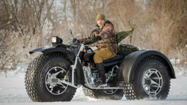 Вездеход оснащается пружинно-рычажной подвеской, цепным приводом. Радиатор вынесли на заднюю часть этого интересного мотоцикла. Модель получила поворотники. Трёхколёснику запрещено выезжать на автодороги общего пользования.