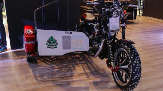 На выставке «Мотовесна-2021» был представлен необычный экземпляр, которым стал Harley-Davidson с коляской. На этом гоночном байке был установлен скоростной рекорд на «Байкальской миле».