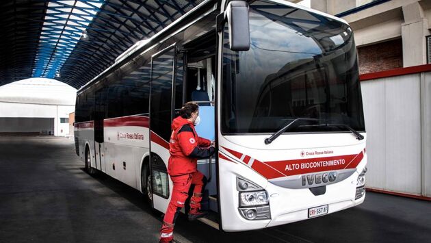 Автобус IVECO BUS Crossway, принадлежащий Итальянскому Красному Кресту, стал первым в мире автобусом с высоким уровнем биозащиты. Это первое в мире транспортное средство, способное перевозить до 41 потенциально заразных людей плюс 6 членов экипажа в условиях полной безопасности.