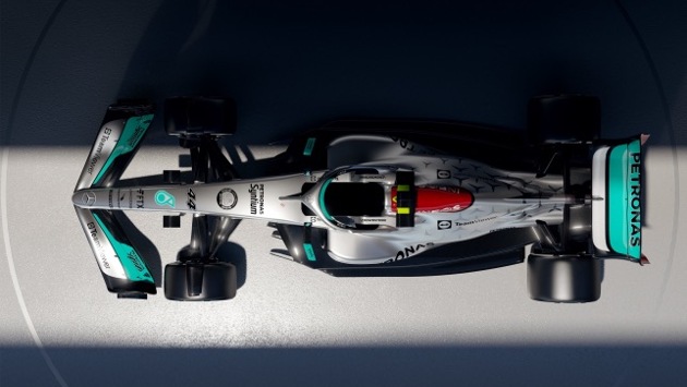 Технические характеристики новой машины, Mercedes-AMG F1 W13 E Performance, обнародованные пресс-службой Mercedes, по традиции более детальные, чем у многих других команд. ШАССИ Монокок: Монокок из углепластика и композитных материалов с сотовой структурой Корпус: Кожух двигателя, боковые понтоны, днище, носовой обтекатель, передние и заднее крылья из углепластика Кокпит: Съёмное анатомическое сиденье гонщика из углепластика, шеститочечные ремни безопасности, система HANS Структуры безопасности: Ячейка безопасности, интегрированная с ударопрочной конструкцией и панелями, предотвращающими сквозные повреждения, передняя структура безопасности, предписанные регламентом противоударные узлы, поглощающие энергию при боковых столкновениях, встроенная задняя структура безопасности, передние и задние элементы, препятствующие повреждениям при опрокидывании машины. Изготовленная из титана система защиты головы гонщика (Halo) Передняя подвеска: Карбоновый треугольный рычаг и толкатель, взаимодействующие с торсионными пружинами и балансирами Задняя подвеска: Карбоновый треугольный рычаг и тяга, взаимодействующие с торсионными пружинами и балансирами Колёсные диски: BBS, кованые, из магниевого сплава Шины: Pirelli. Тормозная система: Карбоновые диски и накладки производства Carbone Industries, электронное управление задними тормозами brake-by-wire Тормозные суппорты: Brembo Рулевое управление: Реечного типа с усилителем Рулевое колесо: Конструкция из углепластика Электроника: Сертифицированные FIA стандартный электронный блок управления ECU и система электрики Панель приборов: McLaren Electronic Systems (MES) Топливная система: ATL, армированный кевларом резиновый топливный бак Горюче-смазочные материалы и технические жидкости: Petronas Tutela. ТРАНСМИССИЯ Коробка передач: 8-ступенчатая, с одной задней передачей, карбоновый корпус Управление КПП: Секвентальное, полуавтоматическое, гидравлический привод Сцепление: Диск из карбона ГАБАРИТЫ Общая длина: Более 5000 мм Ширина: 2000 мм Общая высота: 970 мм Общий вес: 795 кг СИЛОВАЯ УСТАНОВКА Тип: Mercedes-AMG F1 M13 E Performance Минимальный вес: 150 кг Компоненты силовой установки: двигатель внутреннего сгорания (ICE), кинетический мотор-генератор (MGU-K), тепловой мотор-генератор (MGU-H), турбокомпрессор (TC), батарея (ES), управляющая электроника (CE) Каждый гонщик получает на сезон три двигателя внутреннего сгорания, три турбокомпрессора, по три MGU-H и MGU-K, две батареи и два блока управляющей электроники ДВИГАТЕЛЬ ВНУТРЕННЕГО СГОРАНИЯ Рабочий объём: 1,6 л Число цилиндров: 6 Угол развала цилиндров: 90 градусов Число клапанов: 24 Максимальная скорость вращения коленвала: 15000 об/мин Максимальный массовый расход топлива: 100 кг/час на оборотах, превышающих 10500 об/мин Топливная система: непосредственный впрыск под давлением 500 bar, один инжектор на цилиндр Турбонагнетатель: одноступенчатый компрессор и турбина, работающая на выхлопных газах, с приводом от единого вала. Максимальная скорость вращения турбины: 125000 об/мин. СИСТЕМА РЕКУПЕРАЦИИ ЭНЕРГИИ (ERS) ERS: Интегрированная гибридная система рекуперации энергии на основе мотор-генераторов Накопитель энергии: Литий-ионные батареи, минимальный вес 20 кг в соответствии с требованиями регламента Максимальная энергия, запасаемая батареей на одном круге: 4 МДж Максимальное число оборотов MGU-K: 50000 об/мин Максимальная мощность MGU-K: 120 кВт (161 л.с.) Мак