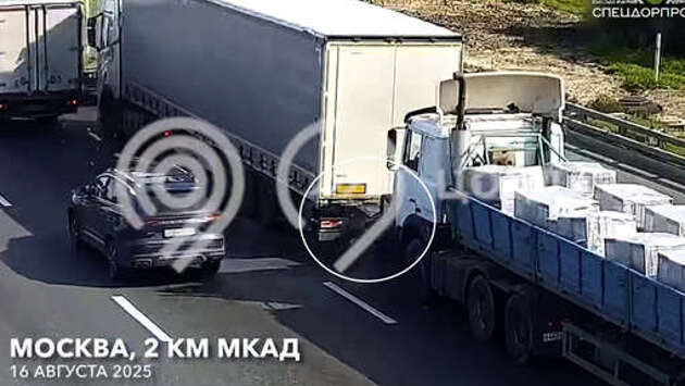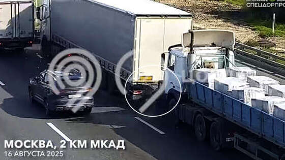 На МКАД большегруз раздавил о фуру легковую машину и попал на видео