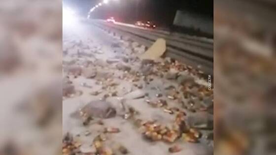 Россияне разобрали ящики пива с места ДТП после опрокидывания фуры на трассе