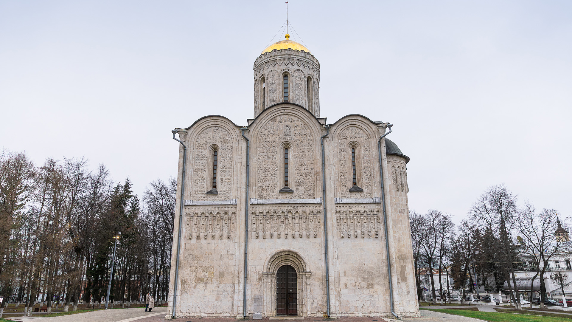 Дмитриевский собор был построен в 1194–1197 годах при князе Всеволоде Большое Гнездо. Храм известен своими богатейшими белокаменными резными рельефами и функционирует только в музейном формате, где основным экспонатом выступает само архитектурное сооружение. Его фасады украшены 1 504 каменными блоками с изображениями фантастической флоры и фауны, а также мифологических и библейских сюжетов, тогда как в интерьере сохранились фрески византийских художников XII столетия, посвящённые теме Страшного суда. На билете в этот музей можно сэкономить, изучив здание снаружи, а вот в Успенский собор стоит попасть внутрь — древние фрески получится оценить только так.