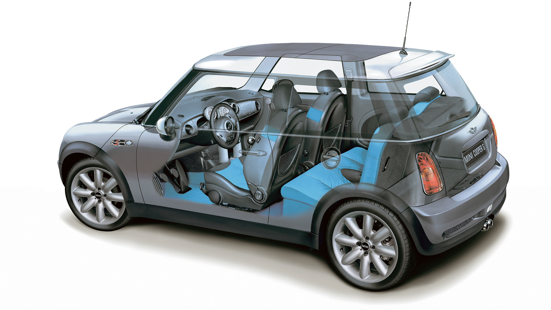 Автомобиль увеличился до примерно 3,6 метра в длину с колёсной базой около 2,4 метра. Это позволило интегрировать зоны программируемой деформации, усиленные элементы кузова и полноценные системы пассивной безопасности. В конструкции широко применялись высокопрочные стали, что значительно повысило жёсткость кузова на кручение и создало базу для точной настройки шасси. Это уже был не доступный «народный автомобиль», а премиальный компакт, спроектированный с учётом краш-тестов и требований по шумоизоляции и эргономики, которые полностью соответствовали началу XXI века.