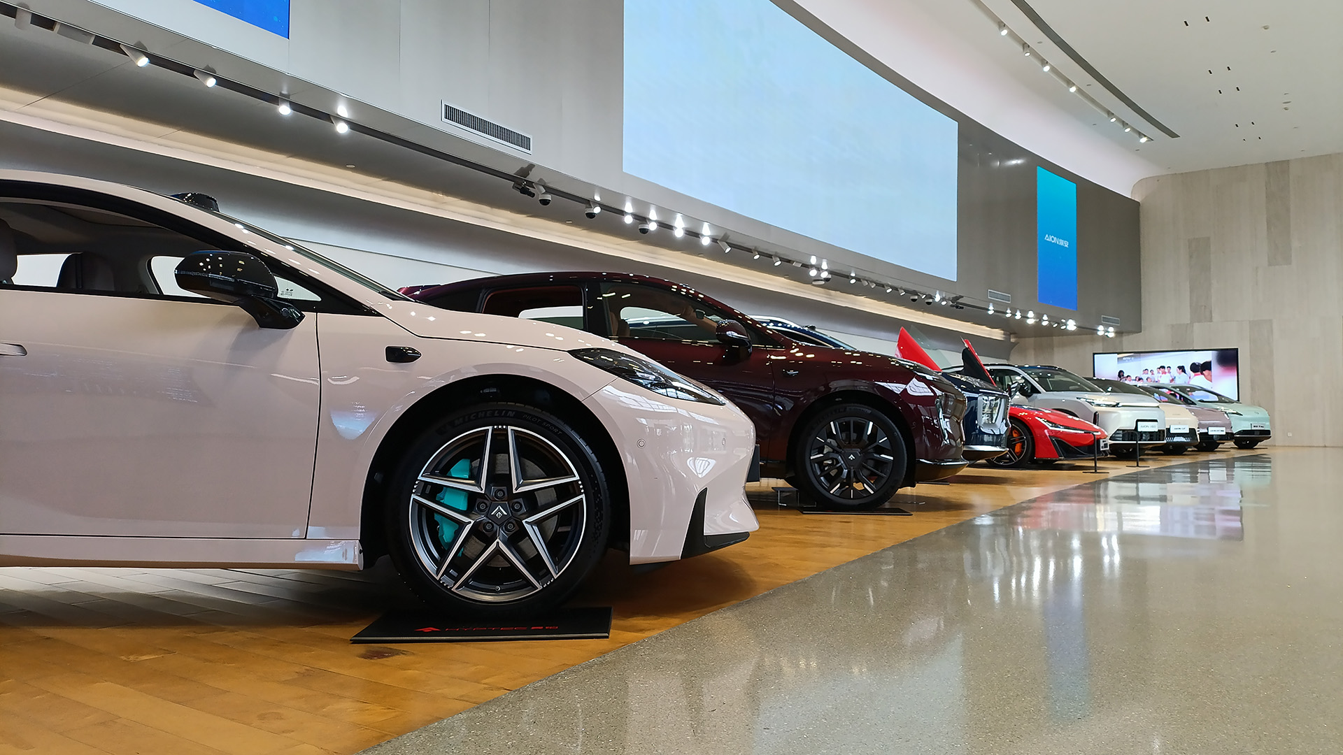 Завод Aion, как оказалось, начинается с собственной «выставки достижений народного хозяйства». На стендах — линейка выпускаемых моделей (исключительно «электрички» и гибриды), макеты технологических «гордостей»: водородные силовые агрегаты разных типов, двигатели (ДВС и электро), тяговые батареи, продвинутая электроника…