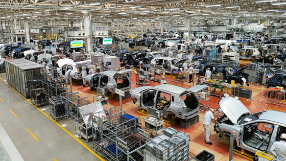 После выставки достижений отправляемся на сборочное производство Aion. Удивляет отсутствие инструктажа по технике безопасности, обязательной каски на голове и прочего. Оказывается, всего этого и не требуется, поскольку под потолком здоровенного цеха с конвейерами устроены широкие мостки, по которым водят группы экскурсантов и перемещаются сотрудники предприятия, не задействованные в процессе сборки.